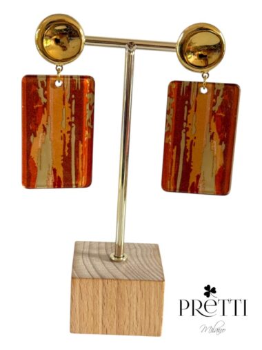 ORECCHINI PENDENTI CON RESINA RETTANGOLARE