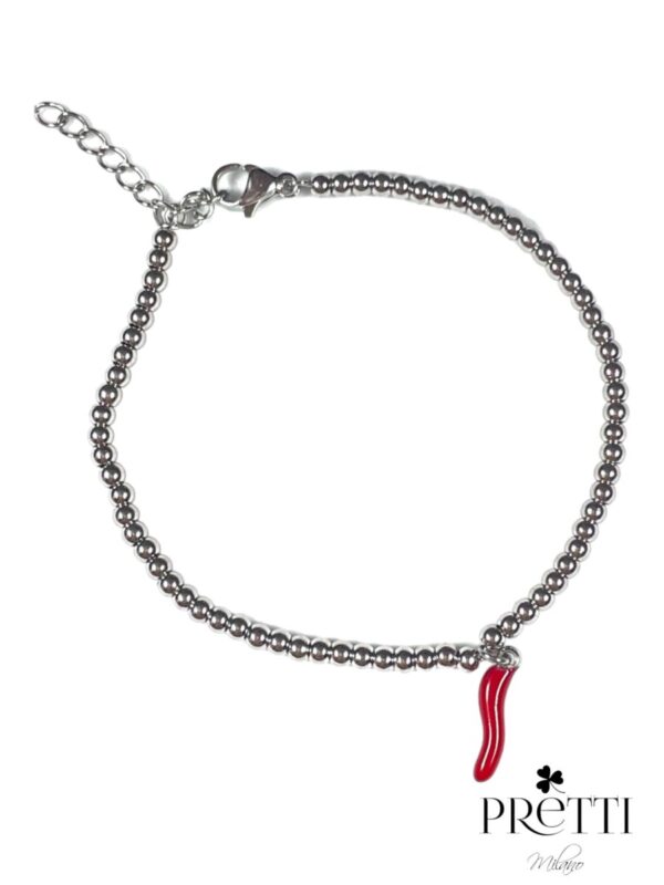 BRACCIALE MAGLIA BIGLIE ACCIAIO 316L ANALLERGICO E INOSSIDABILE CON CORNO PORTAFORTUNA ROSSO