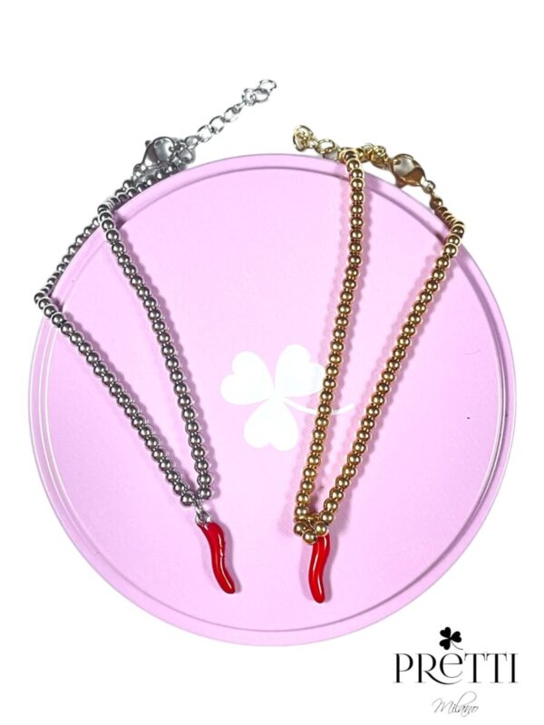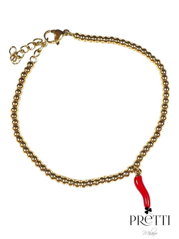 BRACCIALE BIGLIE CORNO PORTAFORTUNA ROSSO