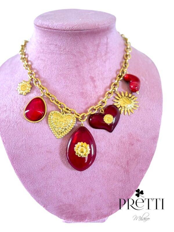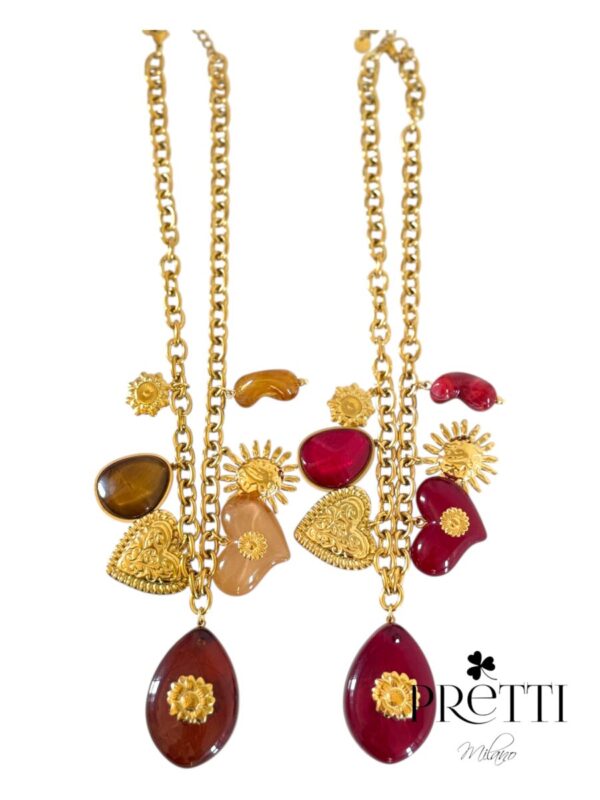 COLLANA CHARMOSA CON RESINE COLORATE IN ACCIAIO 316L ANALLERGICO E INOSSIDABILE