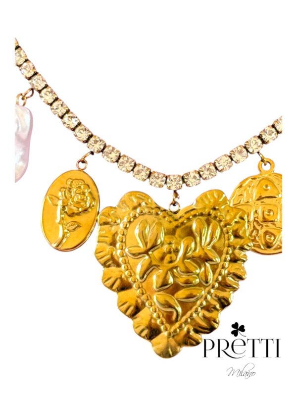 COLLANA CHARMOSA TENNIS CON CUORE CENTRALE IN  ACCIAIO 316L ANALLERGICO E INOSSIDABILE