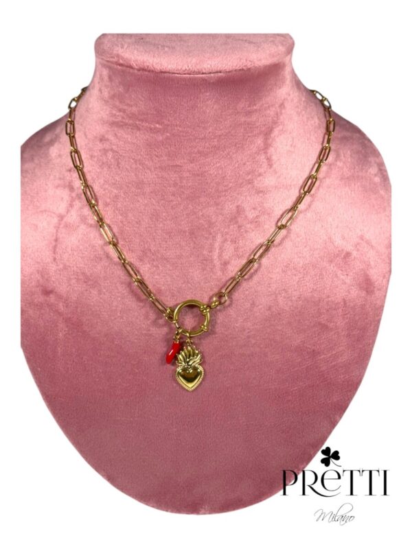COLLANA SALVAGENTE CON CUORE SACRO E CORNO