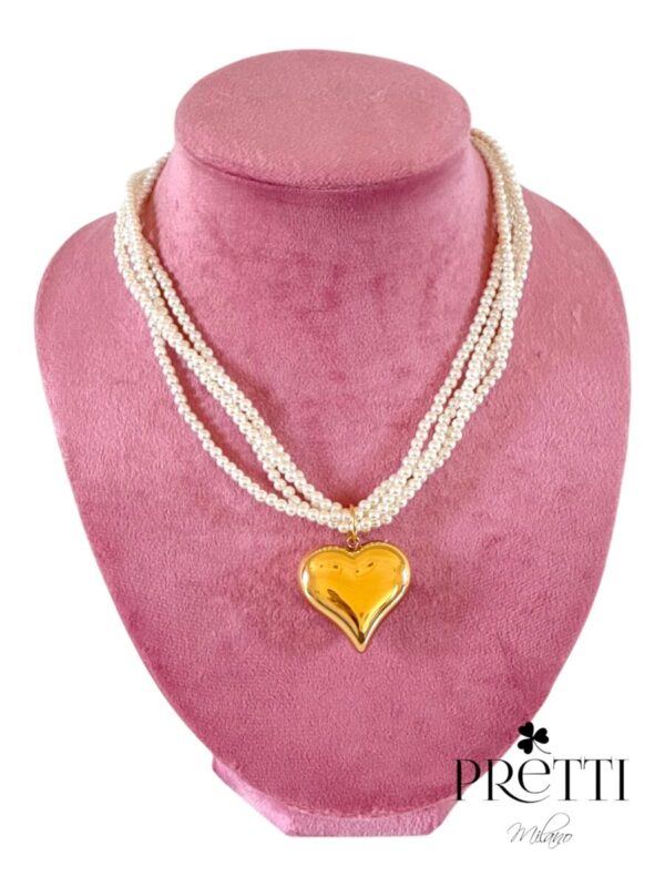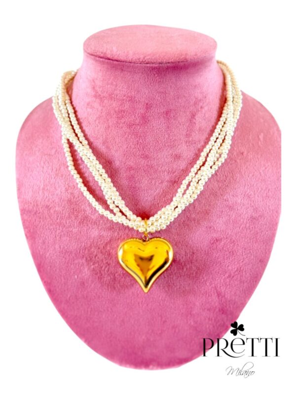 COLLANA MULTIFILO PERLE SINTETICHE E CUORE CENTRALE IN ACCIAIO 316L ANALLERGICO E INOSSIDABILE