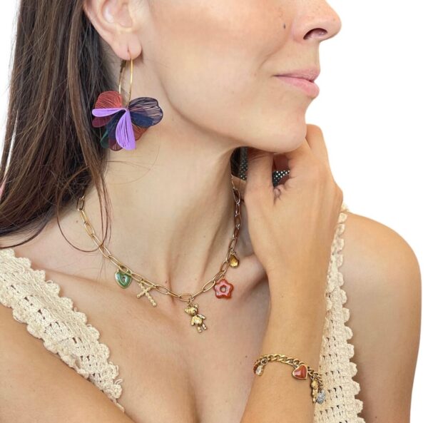 ORECCHINI A CERCHIO CON TRIFOGLI COLORATI