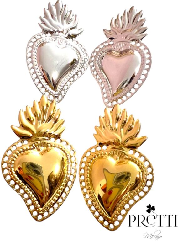 ORECCHINI A LOBO A FORMA DI CUORE SACRO IN ACCIAIO 316L ANALLERGICO E INOSSIDABILE