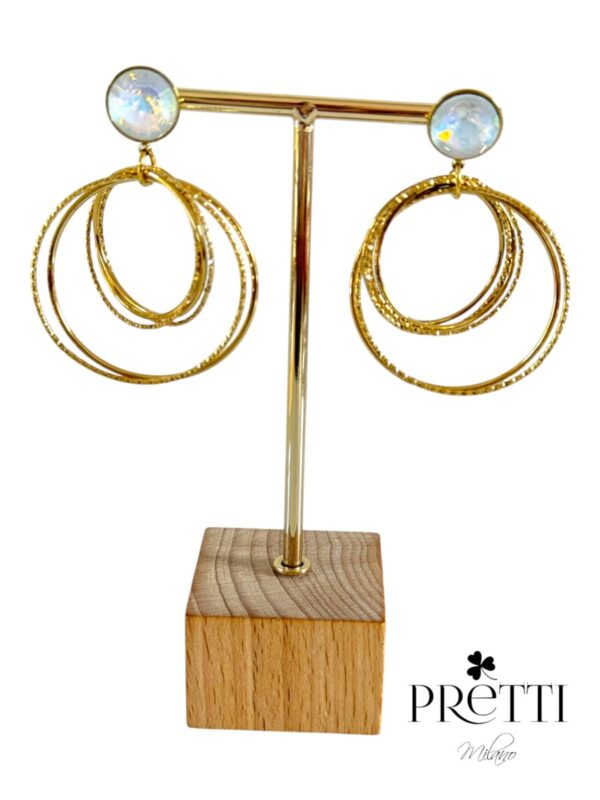 ORECCHINI PENDENTI A MULTICERCHI CONCENTRICI IN ACCIAIO 316L ANALLERGICO E INOSSIDABILE CON PIETRA A LOBO COLORATA