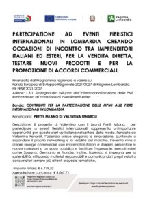 Nel 2025 Pretti Milano ha ricevuto un contributo dalla Regione Lombardia e dai fondi europei per partecipare a fiere internazionali. Questo ci ha permesso di far conoscere le nostre creazioni a nuovi mercati e di incontrare clienti e partner da tutto il mondo, rafforzando la crescita del nostro brand.